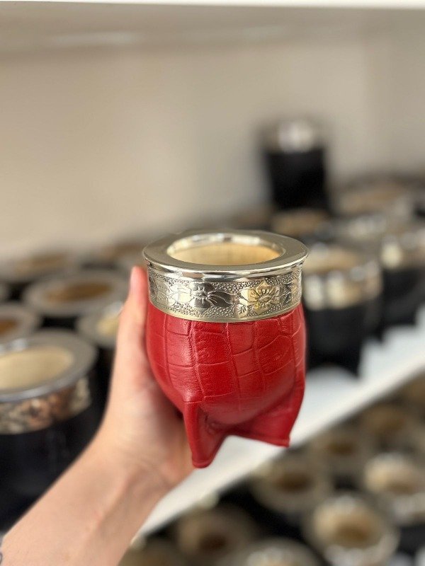 Mate imperial doble cuero azul con fleje de alpaca y virola de acero e interior de calabaza