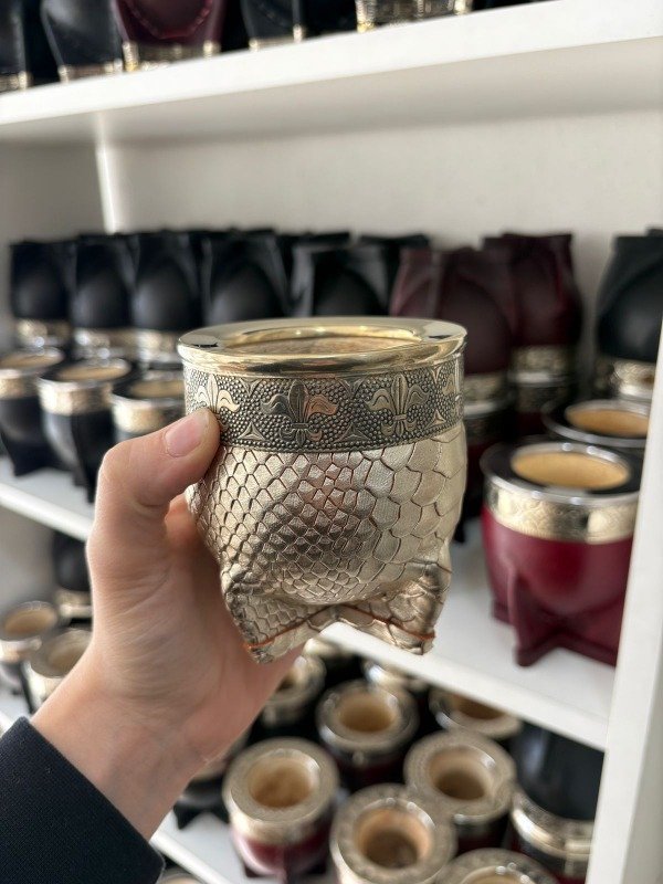 Su delicada costura artesanal y su virola de alpaca imponente le dan ese toque de distinción que lo convierte en una pieza única. Ideal para quienes disfrutan del buen mate con estilo y personalidad.